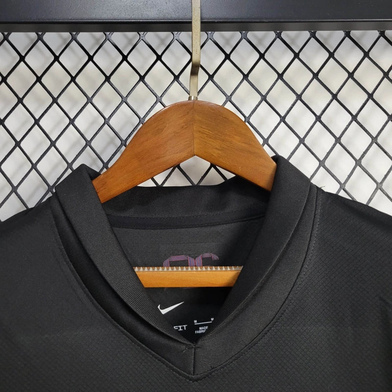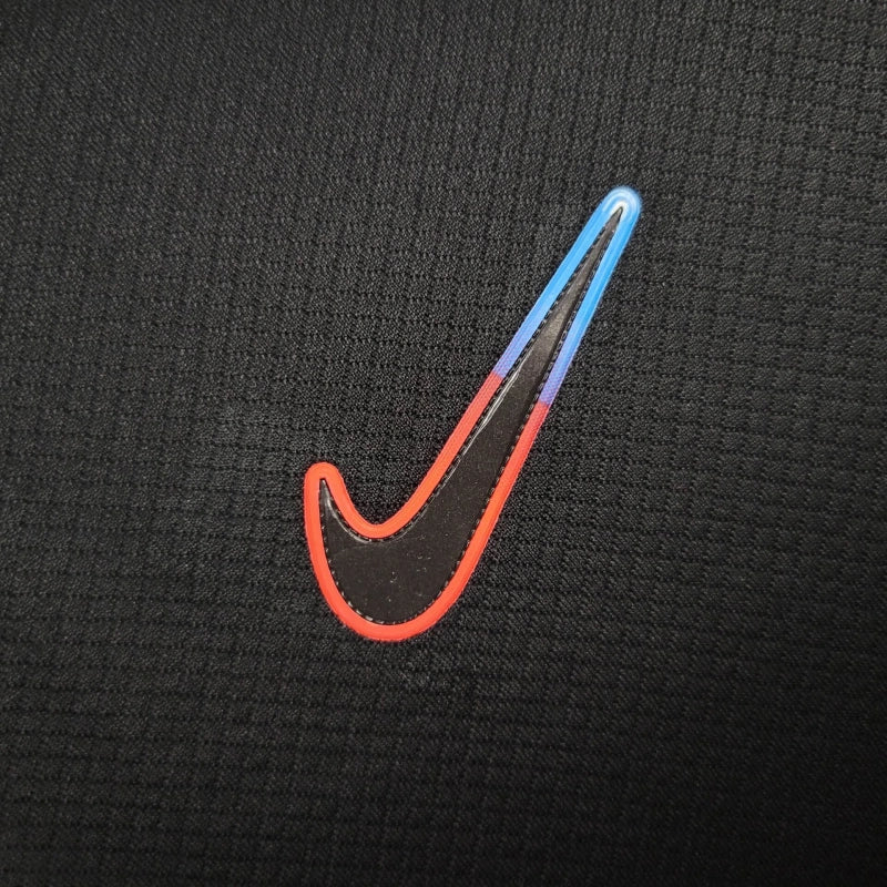 Stylowa, czarna koszulka wyjazdowa FC Barcelony na sezon 2024 emanuje elegancją i siłą. Z minimalistycznym designem, czerwonym logotypem Spotify i subtelnymi niebiesko-czerwonymi detalami, symbolizuje nowoczesne oblicze Dumy Katalonii. Wykonana przez Nike z najwyższej klasy materiałów technicznych.