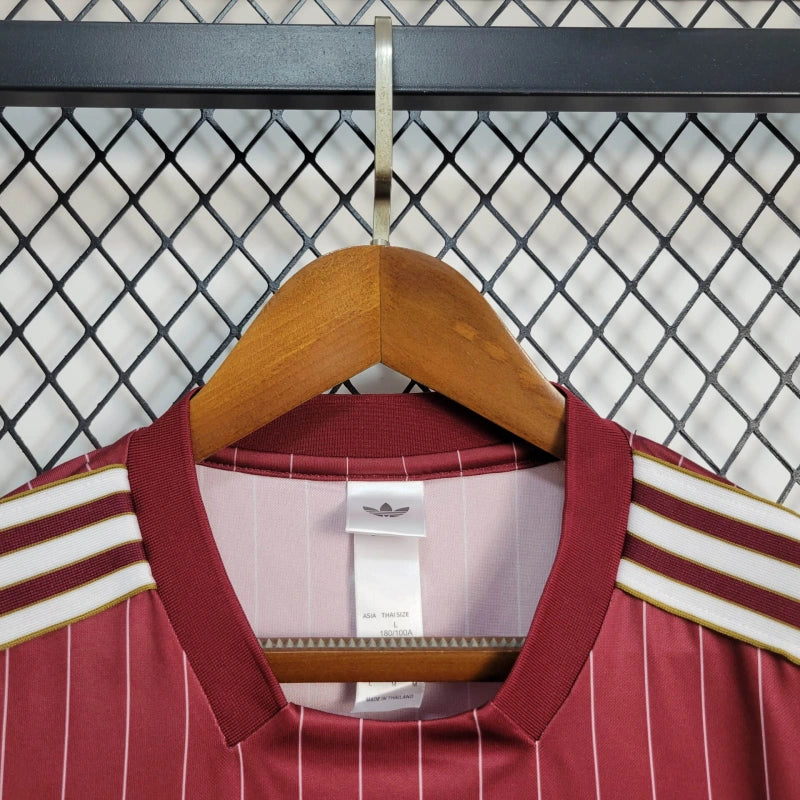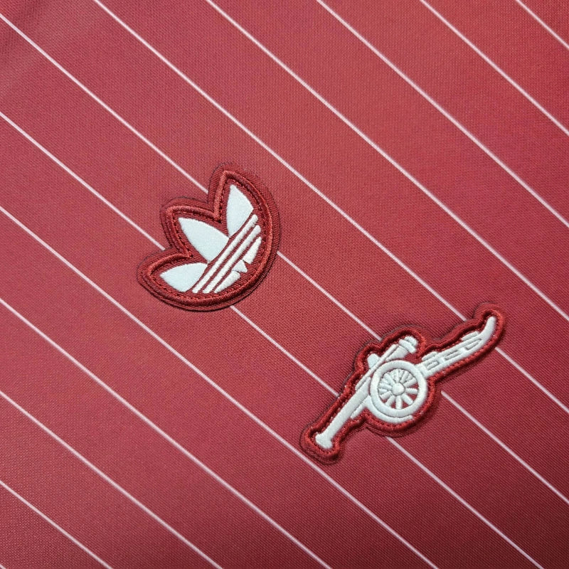 Limitowana koszulka Arsenalu inspirowana klasycznym stylem retro. Bordowa z białymi paskami Adidas i starym herbem klubu. Stylowa i wygodna – doskonała dla fanów i miłośników historii klubu.