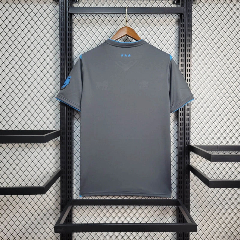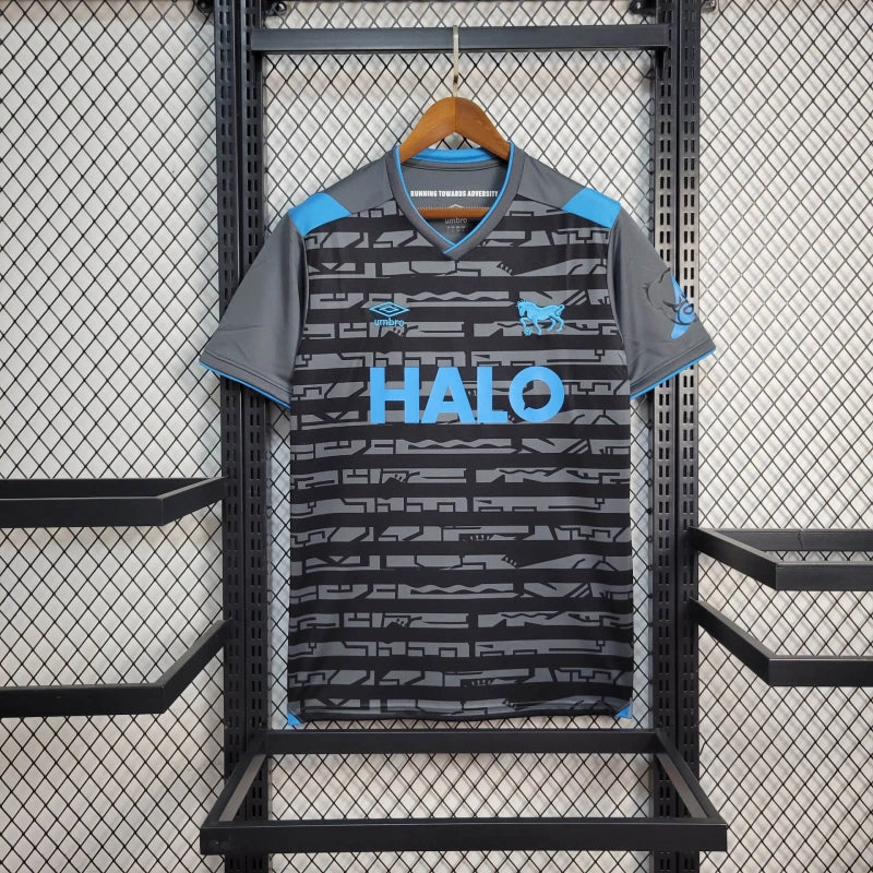 Trzecia koszulka Ipswich Town na sezon 2025. Czarno-szara z niebieskimi akcentami, zaprojektowana przez Umbro. Wygodna i nowoczesna, idealna dla fanów drużyny.