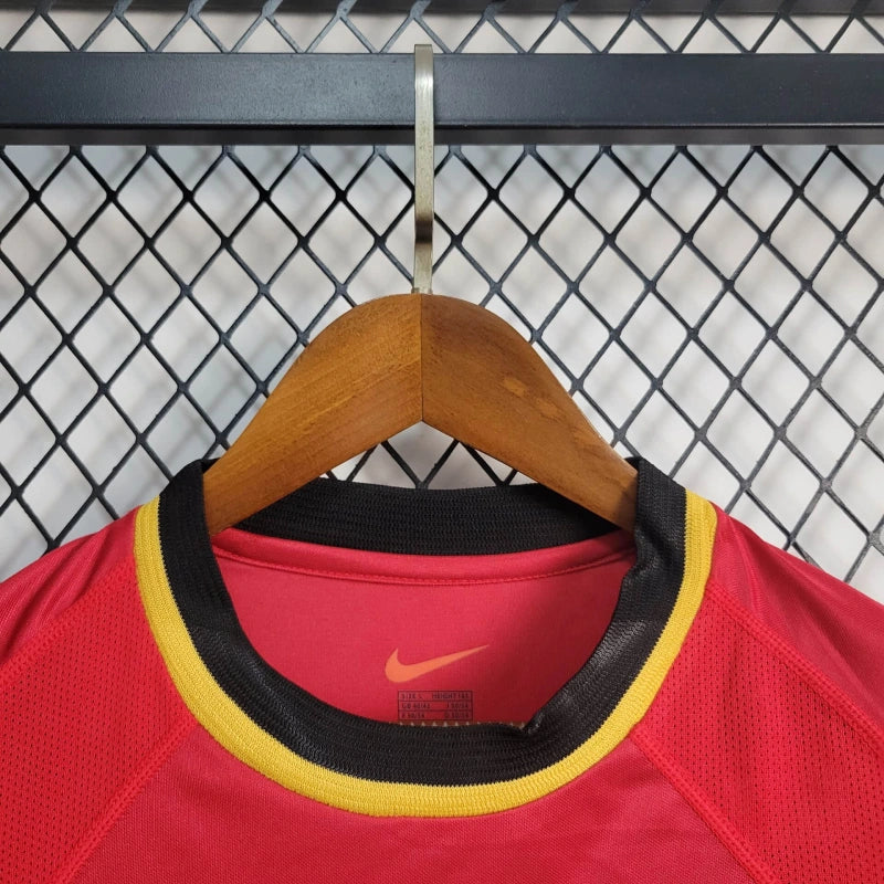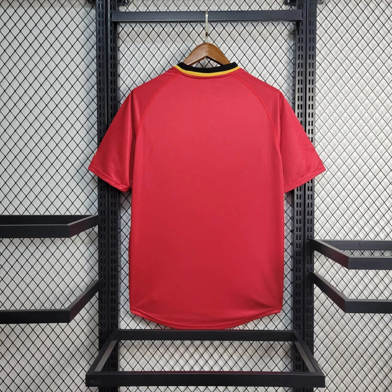 Domowa koszulka reprezentacji Belgii z 2000 roku. Klasyczna czerwień z żółtymi detalami i legendarnym herbem. Retro styl i sportowa elegancja – idealna dla kolekcjonerów i fanów Czerwonych Diabłów.