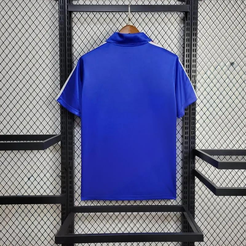 Legendarny model w klasycznym niebieskim kolorze z czerwonym i białym pasem. Odświeżona replika kultowej koszulki mistrzów Europy z 1984 roku. Doskonały wybór dla fanów historii Les Bleus.