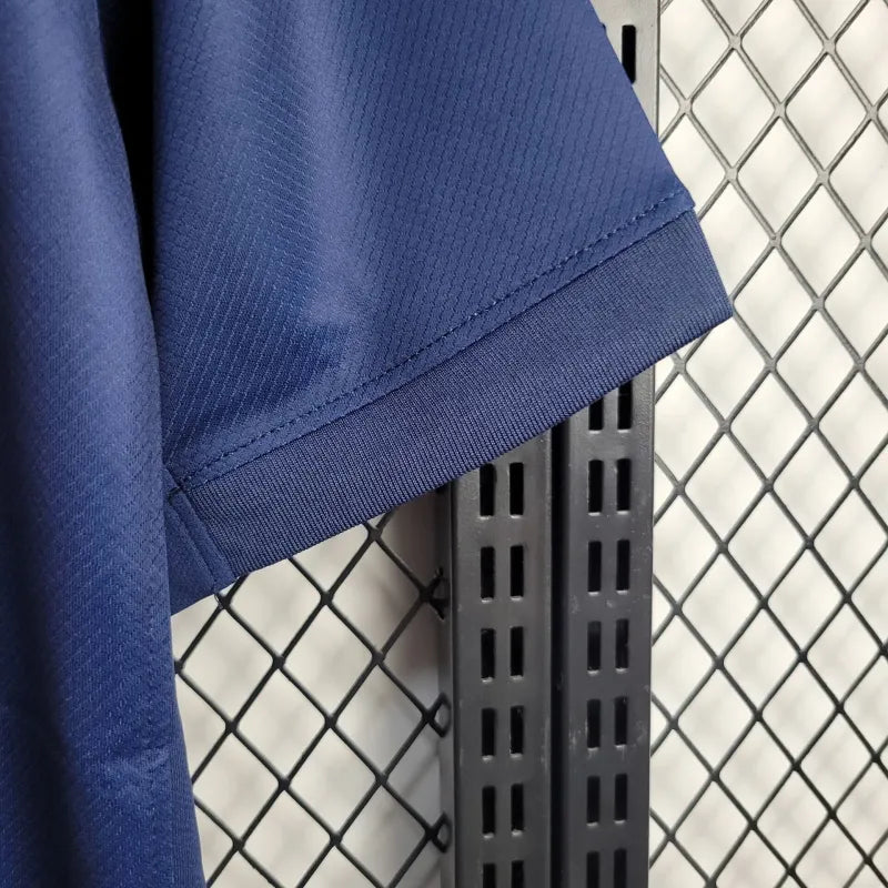 Domowa koszulka PSG na sezon 2024. Klasyczny granat z pionowym czerwonym pasem w stylu vintage. Elegancja i siła paryskiego futbolu w jednym.