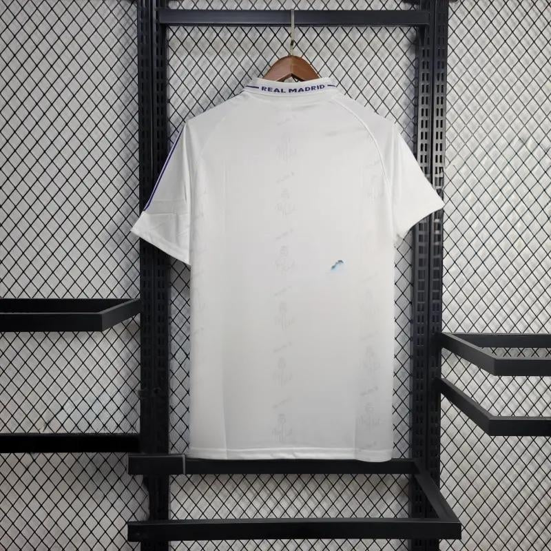 Klasyczna biała koszulka „Los Blancos” z epickiego sezonu początku lat 90. Prosty, elegancki design z fioletowymi detalami Kelme oddaje tradycję oraz królewski charakter klubu.