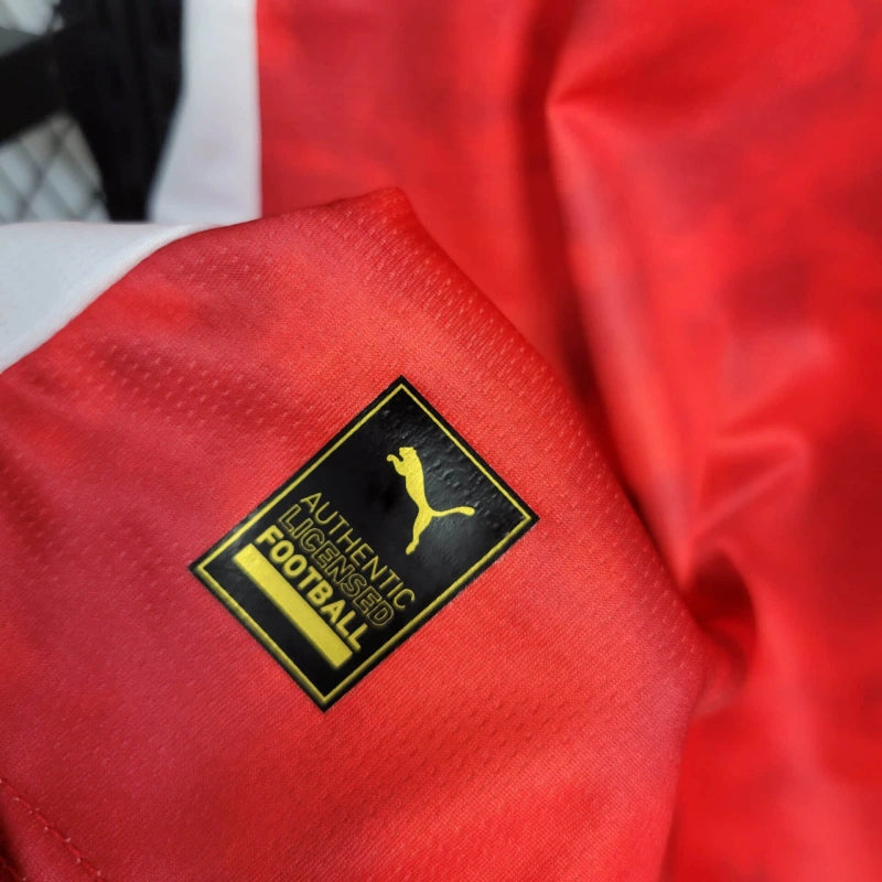 Domowa koszulka Sporting Braga na sezon 2025. Klasyczna czerwień z białymi rękawami i subtelnym wzorem na materiale. Stylowa, lekka i pełna klubowej dumy – idealna dla fanów „Os Arsenalistas”.