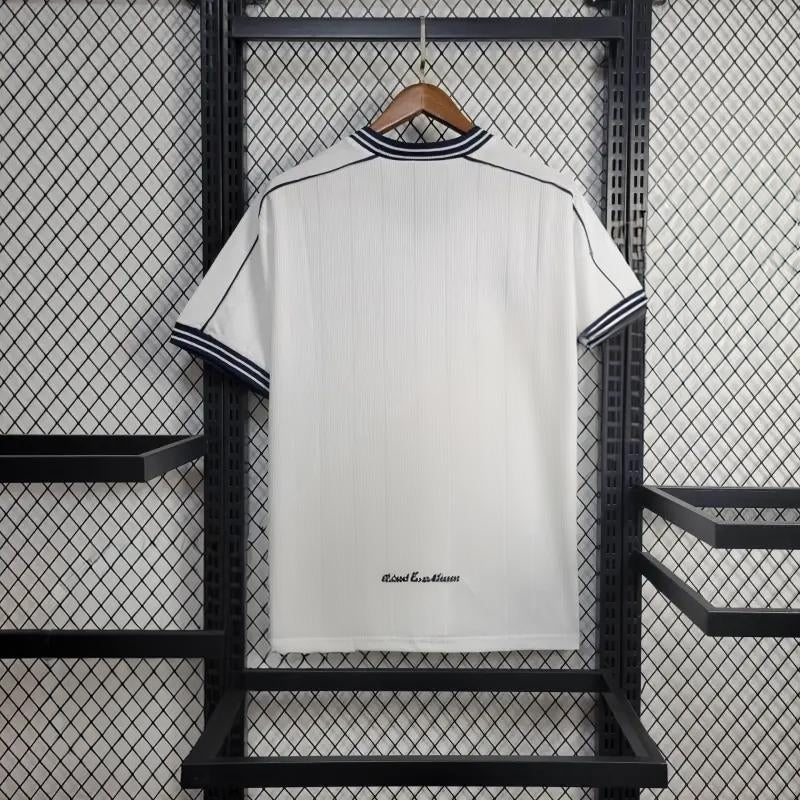 Koszulka w kultowej bieli z granatowymi akcentami, w klasycznym stylu charakterystycznym dla końcówki lat 90. Wygodna, lekka i odpowiednia zarówno do codziennego noszenia, jak i dla kolekcjonerów futbolowych perełek. Idealna dla fanów preferujących tradycyjny wygląd.