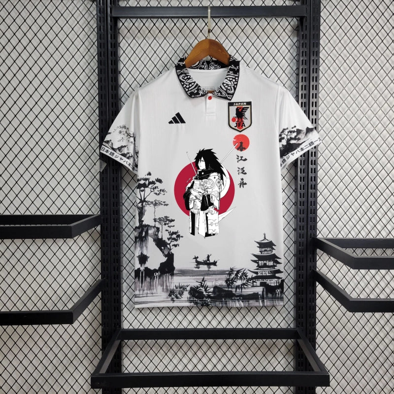 Unikatowa koszulka Japonii 2024 z artystyczną grafiką Itachiego oraz motywem kruków i czerwonego księżyca. W połączeniu z tradycyjnym japońskim tłem tworzy elegancki, mroczny i bardzo stylowy projekt.