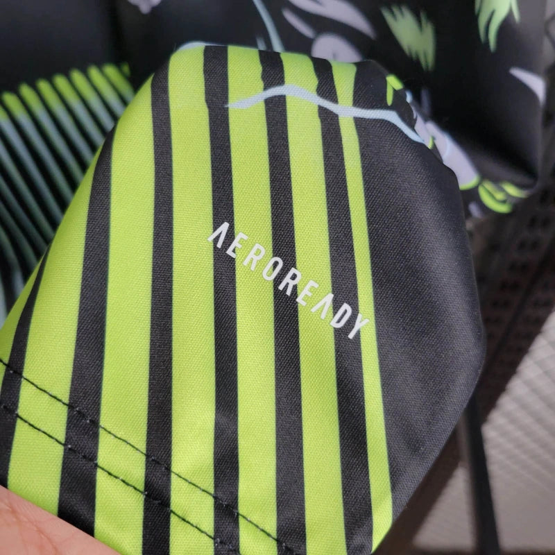 Czarna koszulka z dynamicznym motywem lamparta i błyskawic — symbol szybkości i siły. Unikalny design podkreśla charakter Realu Madryt: drapieżny, nieustraszony, zawsze gotowy do walki. Edycja kolekcjonerska, której nie znajdziesz nigdzie indziej.