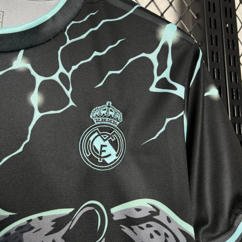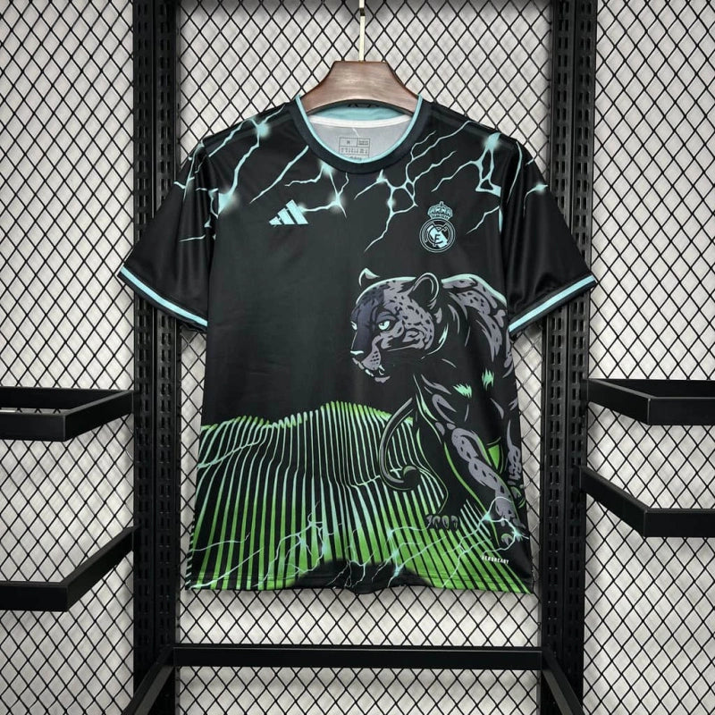 Niezwykła koszulka limitowana Real Madrid 2024 z motywem pantery w zielonych tonach. Symbol siły, precyzji i czystej elegancji.