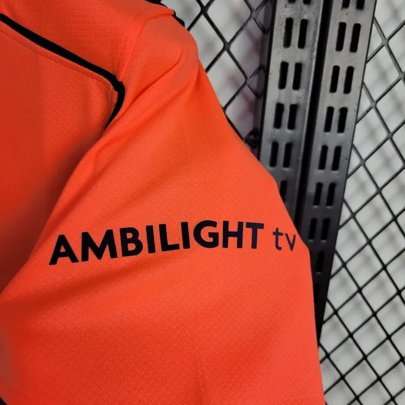 Pomarańczowa koszulka z granatowymi akcentami – nowoczesna, energetyczna i pełna charakteru. Doskonale oddaje pasję oraz odwagę Dumy Katalonii.