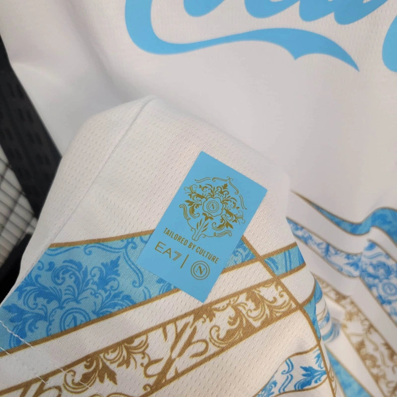 Limitowana koszulka treningowa SSC Napoli 2025 od EA7, inspirowana neapolitańskim stylem i energią miasta. Połączenie bieli, błękitu i złotych detali nadaje jej elegancki, artystyczny charakter. Wysokiej klasy materiał gwarantuje przewiewność i doskonałe dopasowanie. Must-have dla każdego fana włoskiego futbolu i nowoczesnego designu.