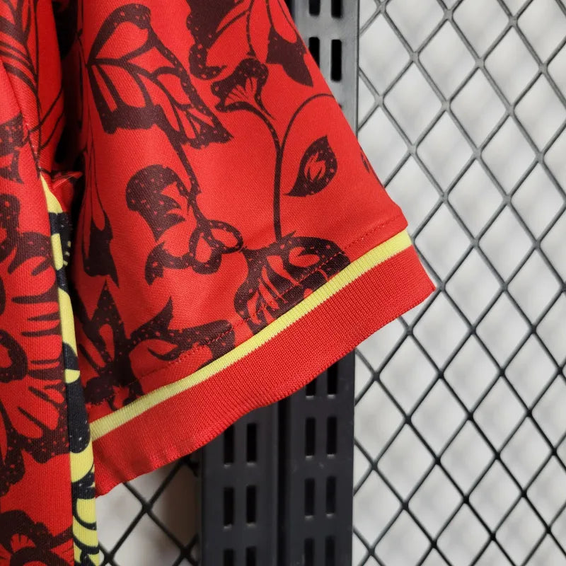 Koszulka treningowa reprezentacji Portugalii z 2024 roku zachwyca oryginalnym kwiatowym motywem w odcieniach czerwieni i czerni. Inspirujący projekt, który łączy sportowy charakter z artystycznym stylem. Idealna dla osób, które cenią wyjątkowe wzory i kibicują portugalskiej drużynie z pasją.