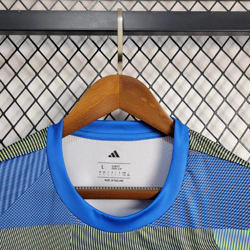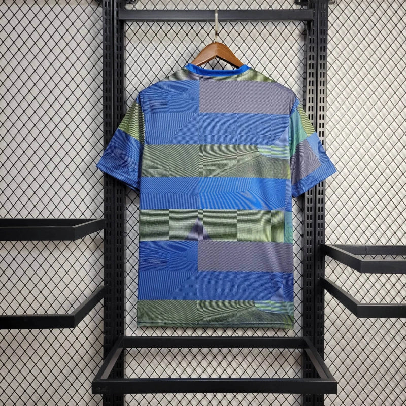 Nowoczesna koszulka treningowa w odcieniach niebieskiego i zieleni. Lekka, oddychająca i zaprojektowana z myślą o intensywnych treningach. Must-have dla każdego kibica Realu Madryt.
