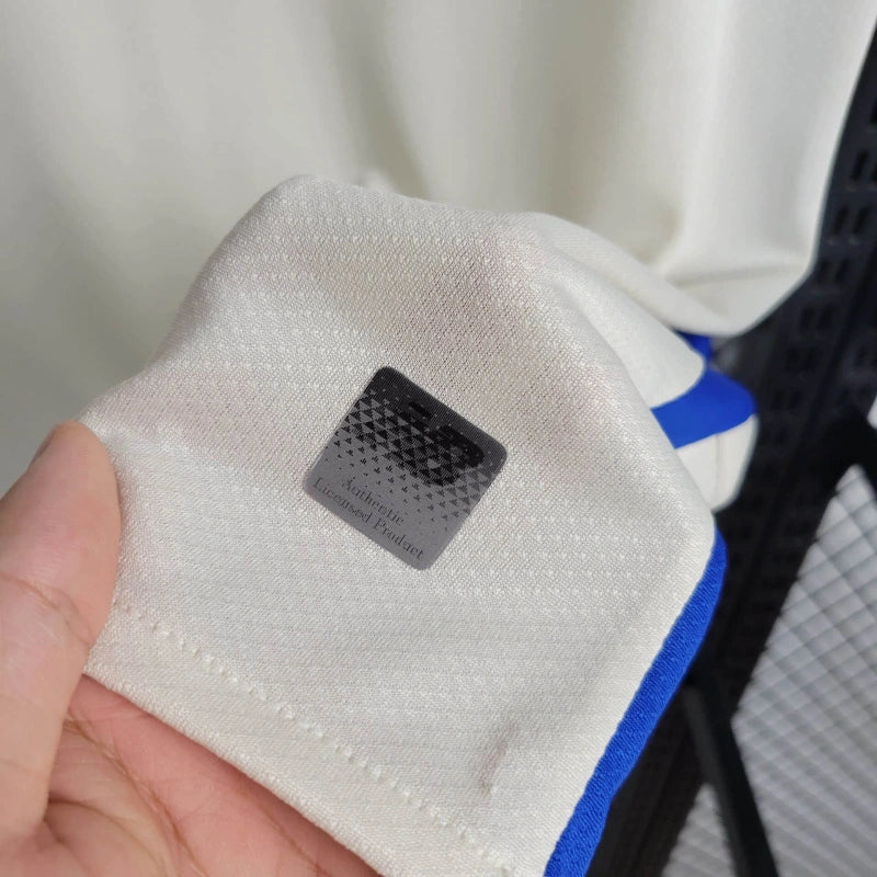 Trzecia koszulka FC Porto na sezon 2025. Jasny kremowy odcień z niebieskimi napisami i klasycznym kołnierzykiem. Stylowa i wyjątkowa, nawiązująca do historii klubu.