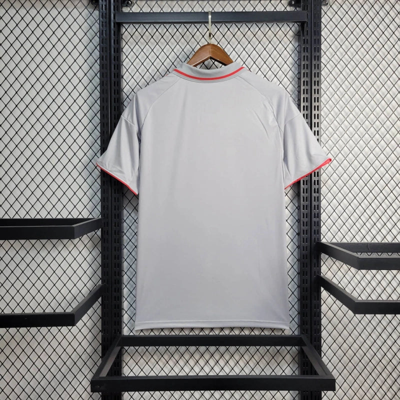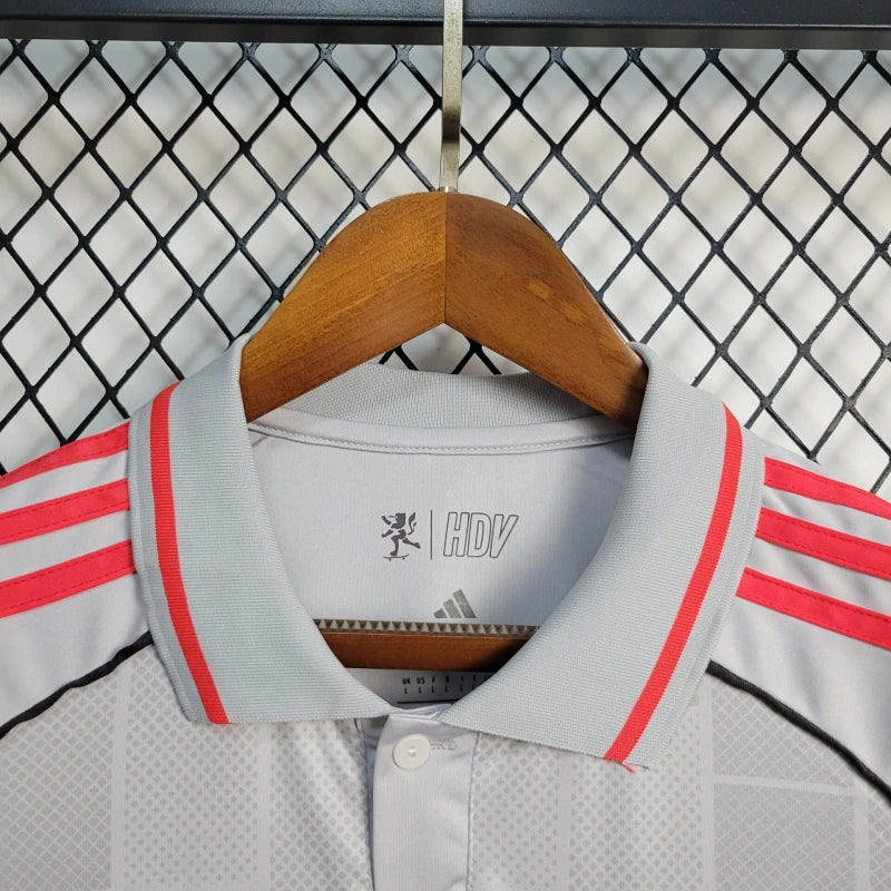 Oficjalna trzecia koszulka Olympique Lyon na sezon 2025. Szara z czerwonymi detalami i nowoczesnym geometrycznym wzorem. Połączenie elegancji i sportowego stylu.