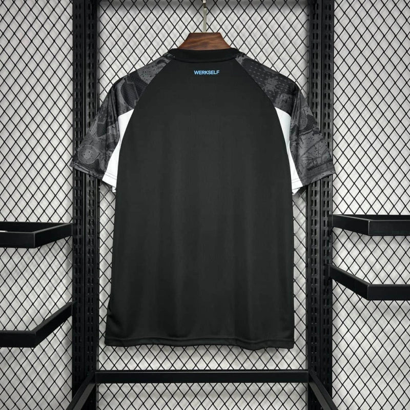 Nowoczesna i wyjątkowa – trzecia koszulka Bayer Leverkusen 2024 przyciąga wzrok ciemnym, graficznym wzorem inspirowanym miastem. Logo Barmenia i błękitne detale dodają jej świeżego, dynamicznego charakteru. To model, który wyróżni każdego fana.
