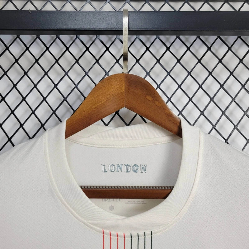 Elegancka kremowa koszulka z delikatnymi pionowymi liniami i akcentami w barwach klubowych. Projekt Nike łączy prostotę, klasę i londyński charakter. Doskonała na każdy dzień.