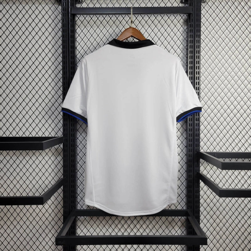 Biała koszulka z sezonu, w którym Inter Mediolan z Ronaldo i Zanettim dominował w Europie. Charakterystyczne czarne i niebieskie akcenty oraz logo Pirelli czynią ten model absolutnym klasykiem włoskiego futbolu.