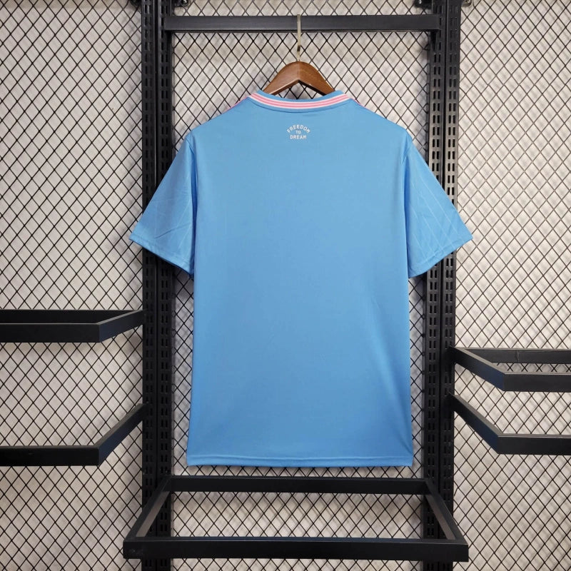 Koszulka wyjazdowa Inter Miami na sezon 2025 to połączenie stylu i nowoczesności. Jasnoniebieski kolor z różowymi akcentami nawiązuje do charakterystycznej estetyki klubu. Model ten łączy klasyczny krój z nowoczesnymi detalami, tworząc idealną propozycję dla każdego fana amerykańskiej piłki.