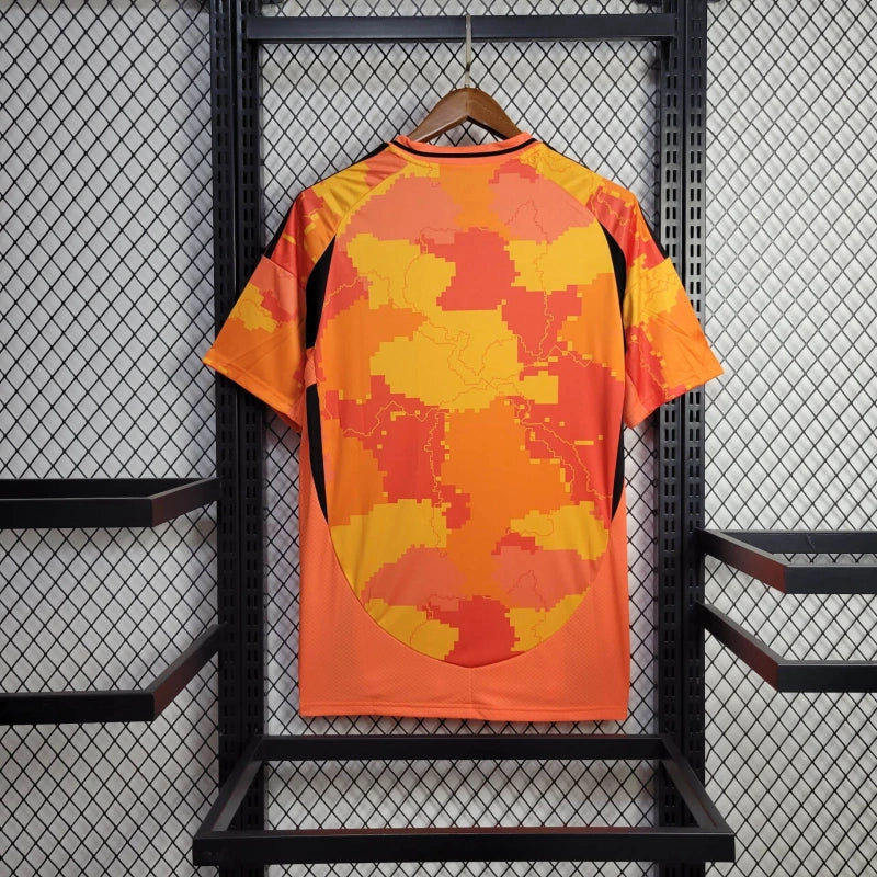 Wyjazdowa koszulka Paris FC na sezon 2025. Odważny, pomarańczowo-żółty wzór kamuflażu z czarnymi detalami. Energetyczny design, który wyróżnia się na boisku.