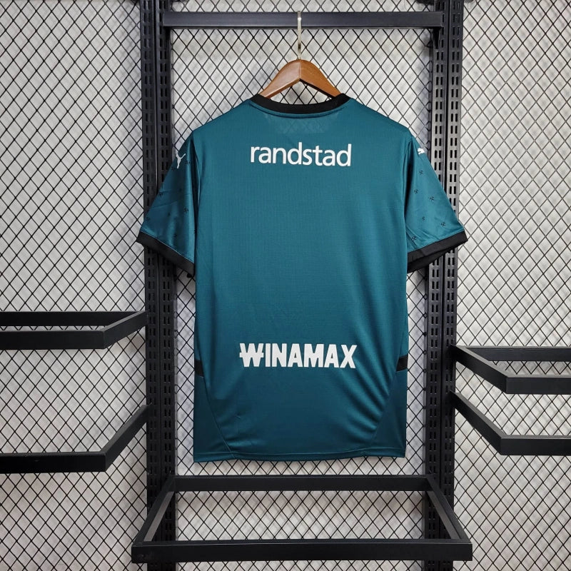 Koszulka wyjazdowa RC Lens 2024 w odcieniu butelkowej zieleni to połączenie nowoczesności i elegancji. Minimalistyczny wzór oraz charakterystyczne logo Pumy tworzą dynamiczny wygląd, który doskonale odzwierciedla energię i pasję drużyny z północy Francji.