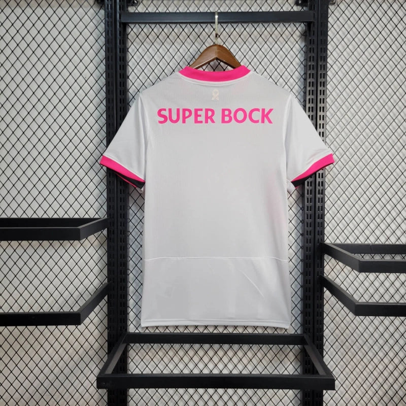 Oficjalna koszulka wyjazdowa Sporting CP na sezon 2025. Biała z różowymi akcentami, nowoczesna i stylowa propozycja dla kibiców.
