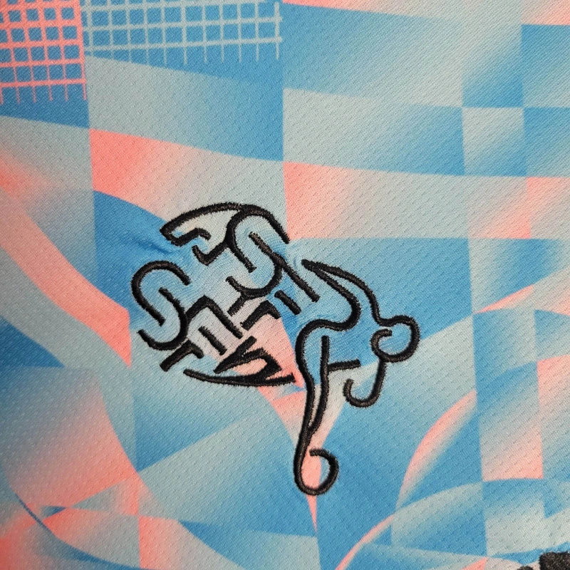 Nowoczesna i odważna koszulka wyjazdowa reprezentacji Szwajcarii na rok 2026. Połączenie pastelowego błękitu i różu tworzy unikalny geometryczny wzór, który wyróżnia się na boisku. Lekki i oddychający materiał Puma zapewnia maksymalny komfort podczas gry i codziennego noszenia. Idealna dla fanów helweckiej precyzji i wyjątkowego stylu.