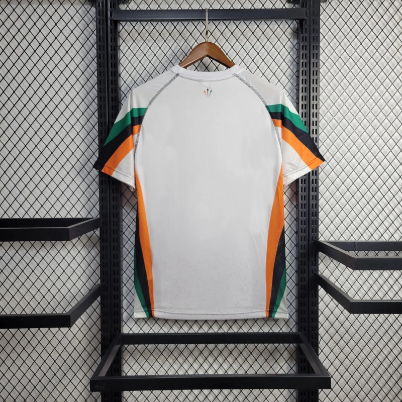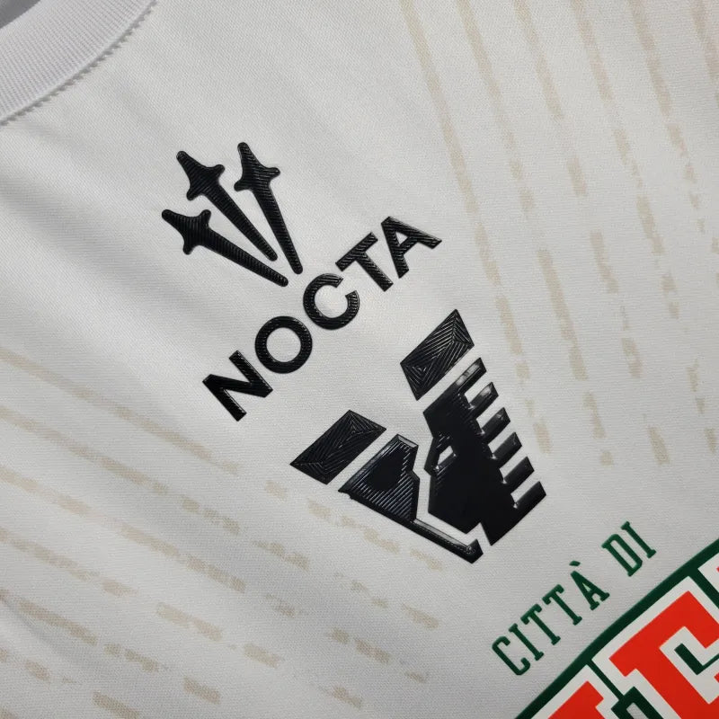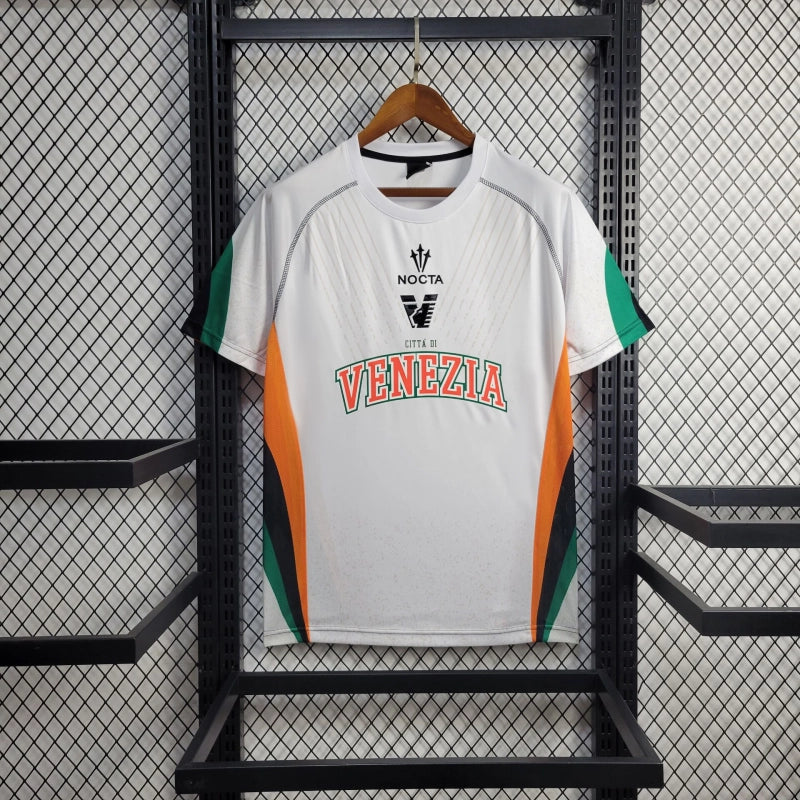 Nowoczesny design i artystyczny styl – koszulka Venezia 2025 w wersji wyjazdowej łączy kolory Wenecji: biel, zieleń i pomarańcz. Projekt marki Nocta zachwyca minimalizmem i elegancją, a jednocześnie przyciąga uwagę unikalnym krojem i miejskim charakterem. To prawdziwa perełka dla fanów włoskiej mody i piłki nożnej.