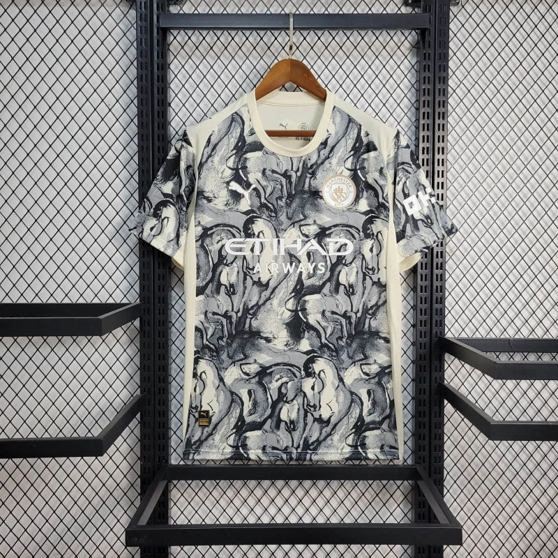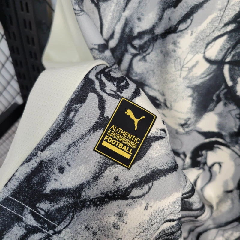 Specjalna edycja „Halloween” koszulki Manchester City 2025. Beżowo-czarna z wyjątkowym wzorem, wykonana przez Pumę. Świetna propozycja dla kolekcjonerów i kibiców.