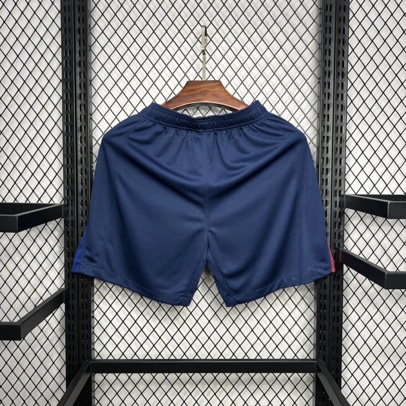 Granatowo-bordowe spodenki domowe FC Barcelony na sezon 2024. Wykonane z materiału odprowadzającego wilgoć, z herbem klubu i logo Nike. Symbol dumy i pasji katalońskiej drużyny.