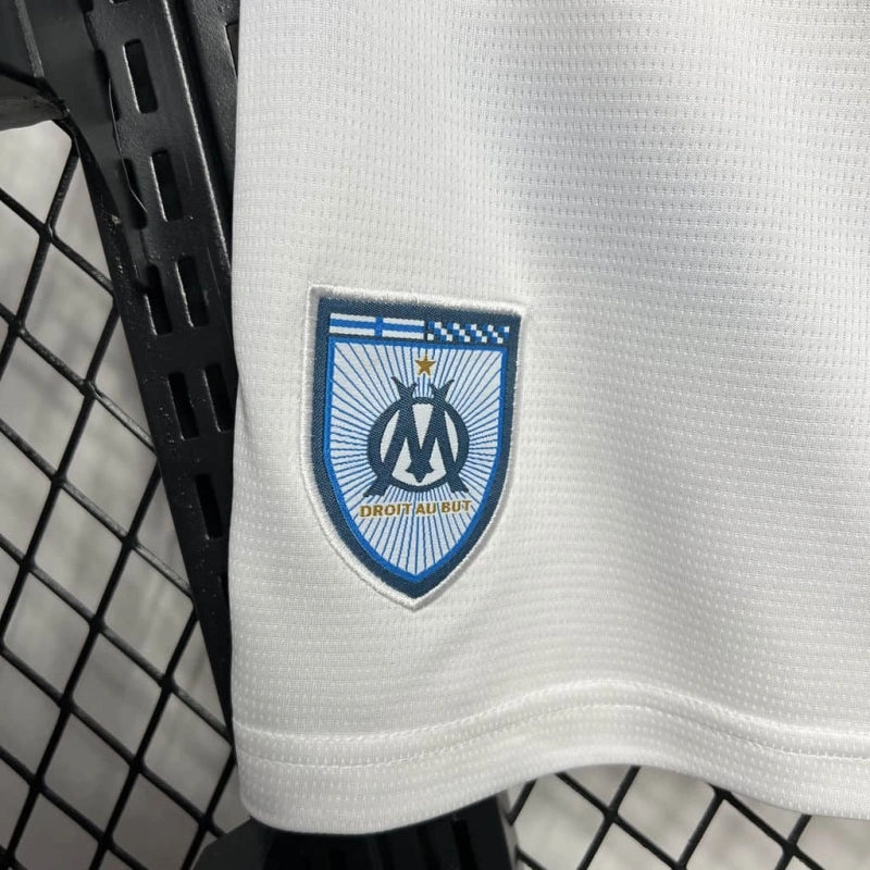 Klasyczne białe spodenki domowe Olympique Marsylia na sezon 2024. Wykonane z wysokiej jakości tkaniny technicznej zapewniającej komfort i swobodę ruchu. Minimalistyczny design z niebieskimi akcentami.